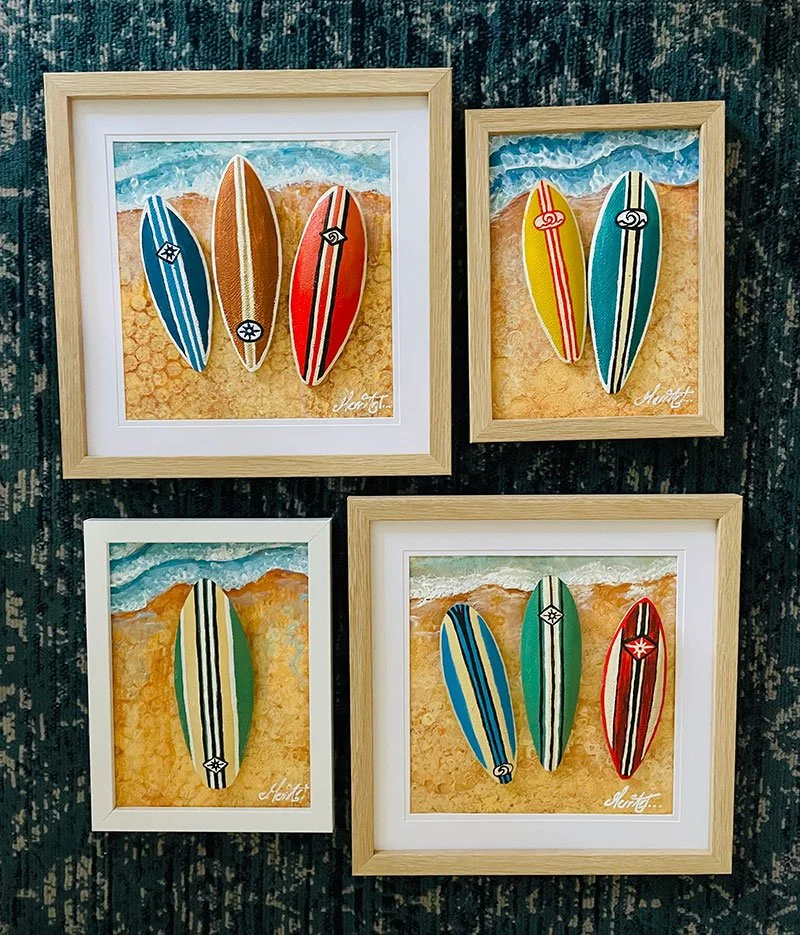 Nature’s True Surfboads. Shaped, hand-painted cuttlefish, by Merrett Keech