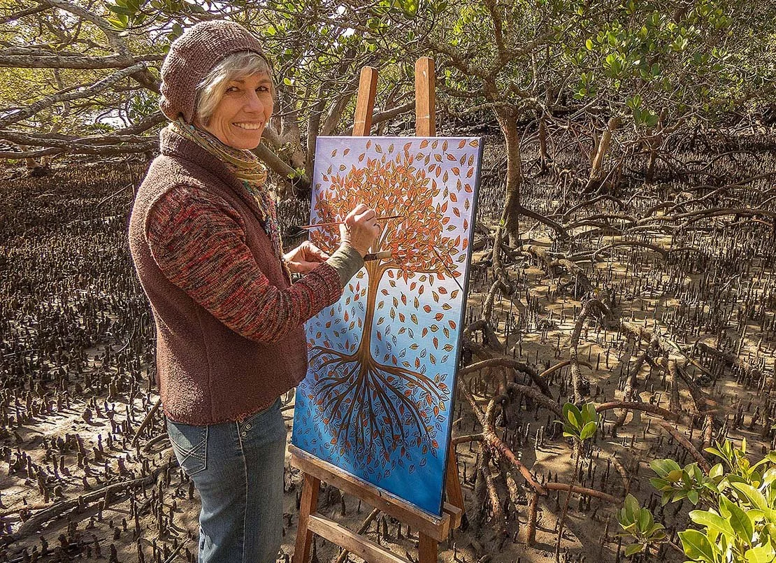 Merrett Keech, the artist at work amongst the mangroves on Coochiemudlo Island